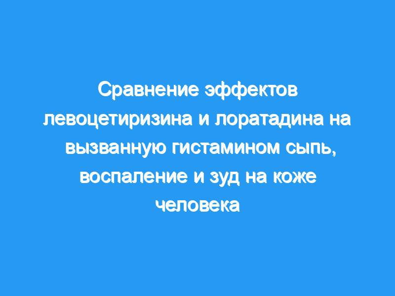 Левоцетиризин (5 мг), лоратадин (10 мг) или плацебо принимали перорально за 4 ч до внутрикожной инъекции гистамина (20 мкл, 100 мкм) или контрольного носителя в кожу предплечья здоровых добровольцев. Области вспышек оценивали с помощью сканирующей лазерной доплеровской визуализации до и с интервалом в 30 секунд в течение 9 минут. Площади пшеницы измеряли методом планиметрии через 10 мин. Зуд оценивался каждые 30 с с помощью визуальной аналоговой шкалы.
