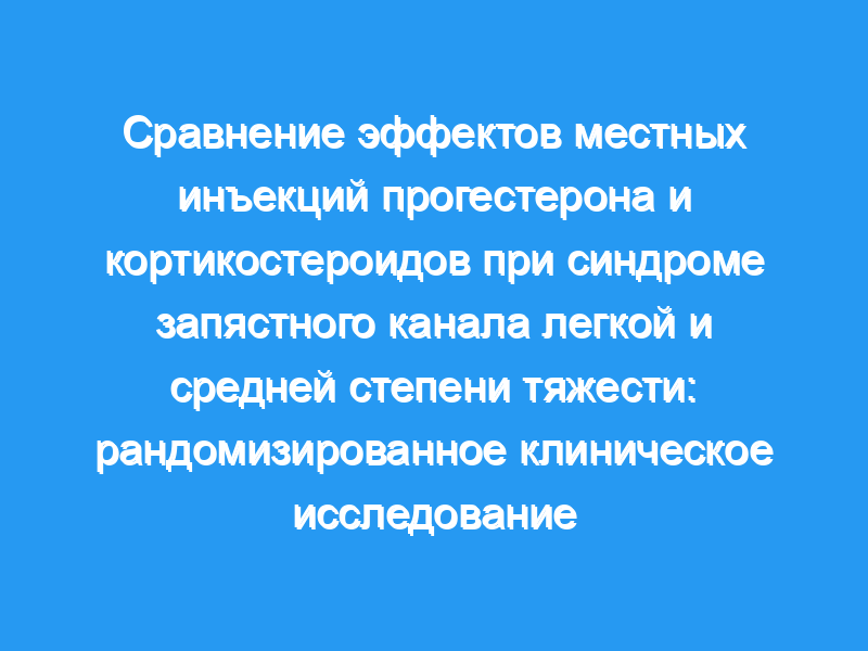 Целью данного исследования было сравнение краткосрочных эффектов местных инъекций прогестерона и кортикостероидов при лечении пациенток с синдромом запястного канала.