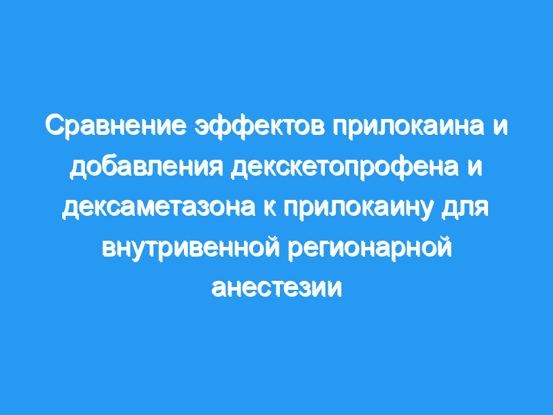 Добавление декскетопрофена и дексаметазона к прилокаину во время IVRA улучшает качество как анестезии, так и обезболивания, кроме того, декскетопрофен обеспечивает лучшую послеоперационную анальгезию во время первые 24 часа после операции.