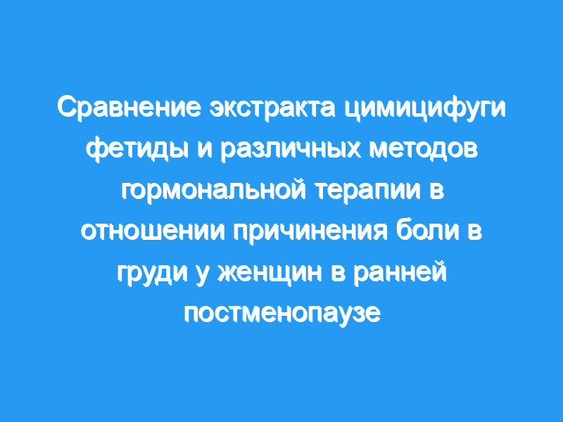 Целью этого исследования было сравнить влияние экстракта цимицифуги фетиды и различных гормональных методов лечения на боль в груди у женщин в ранней постменопаузе.