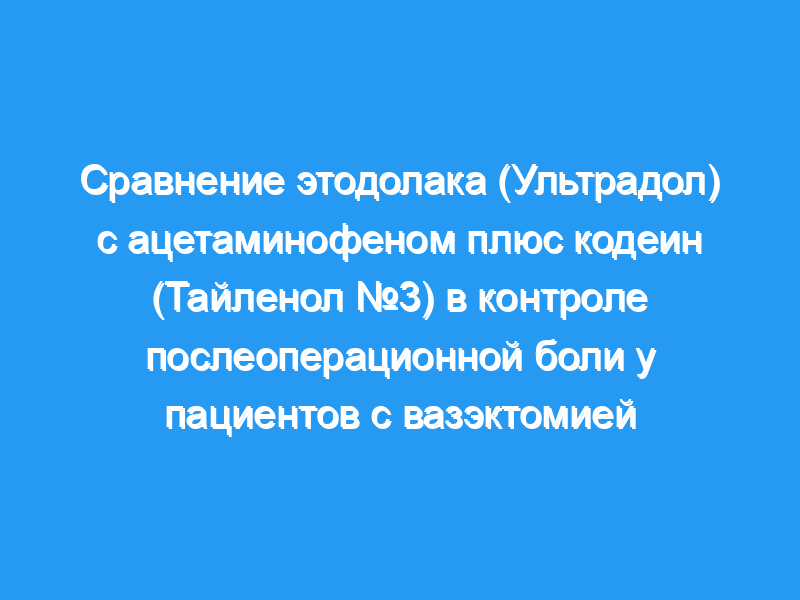 Результаты этого исследования показывают, что этодолак и А + С одинаково эффективны и хорошо переносятся для контроля боли после вазэктомии, и что пациенты могут наблюдать повышенную пользу от этодолака за счет того, что возможность вернуться к работе раньше.
