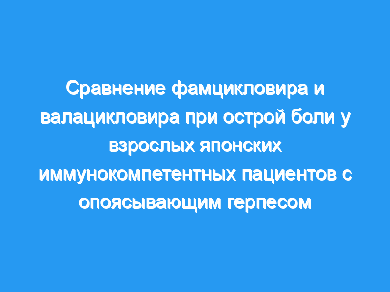 Мы пришли к выводу, что фамцикловир превосходил валацикловир в облегчении острой боли при опоясывающем герпесе.