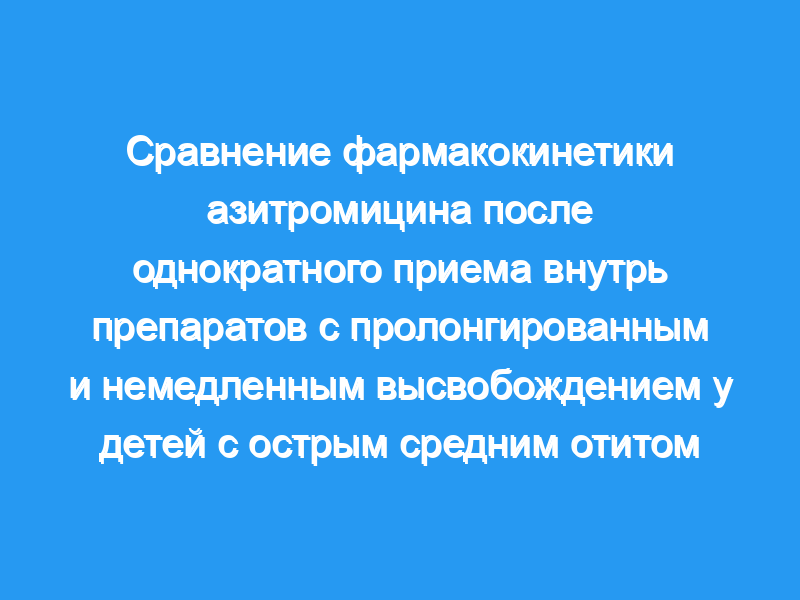 Однократная доза 30 мг/кг пероральной суспензии азитромицина с немедленным высвобождением (IR) использовалась у детей для лечения острого отита средства массовой информации (АОМ). Это исследование было проведено для сравнения фармакокинетики однократной дозы азитромицина ER в дозе 60 мг/кг с однократной дозой азитромицина IR в дозе 30 мг/кг у детей с АОМ в возрасте от 6 месяцев до 6 лет (n = 19 на лечение). Образцы сыворотки были взяты в 1, 2, 3, 4, 8, 24, 48, и через 72 ч после введения дозы.