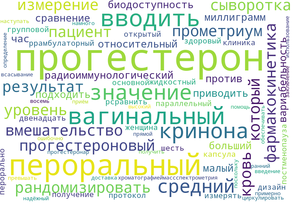 Амбулаторная клиника. Пациент(ы): Двенадцать здоровых женщин в постменопаузе. Вмешательство (вмешательства): По шесть пациентов были рандомизированы для получения прогестерона, который вводили либо в виде 90 мг прогестеронового геля (Кринон 8%), вводимого вагинально, либо 100 мг прогестерона в капсуле (Прометриум), вводимого перорально. Основные измерения результатов: Уровни прогестерона в сыворотке крови измеряли как радиоиммунологическим анализом (RIA), так и жидкостной хроматографией-масс-спектрометрией (LC-MS). Результат(ы): Прогестерон, вводимый вагинально, приводил к большей биодоступности при меньшей относительной вариабельности всасывания, чем пероральный прогестерон (средняя AUC(0-24) = 1.48 +/- 0.16 нг. ч/мл на миллиграмм по сравнению 0.035 +/- 0.0052 нг. ч/мл на миллиграмм). Среднее значение C (max) для перорального прогестерона было намного ниже, чем для вагинального прогестерона (т.е. 2.20 +/- 3 . 06 нг/мл против 10.51 +/- 0.46 нг/мл). Среднее значение T(max) для перорального прогестерона наступало раньше, чем для Кринона (1.00 +/- 0.41 часов против 7.67 +/- 3.67 часов). Радиоиммунологический анализ не подходит для определения уровней прогестерона в сыворотке крови после перорального приема, поскольку он дает ошибочно высокие значения, которые примерно в восемь раз превышают значения, полученные с помощью LC-MS. Заключение (ы): Кринон (гель прогестерона), вводимый вагинально, приводит к большей биодоступности при меньшей относительной вариабельности, чем пероральный прогестерон, что обеспечивает более надежную доставку прогестерона по сравнению с пероральным прогестероном. Измерение циркулирующего прогестерона с использованием прямого RIA не подходит после перорального введения прогестерона.