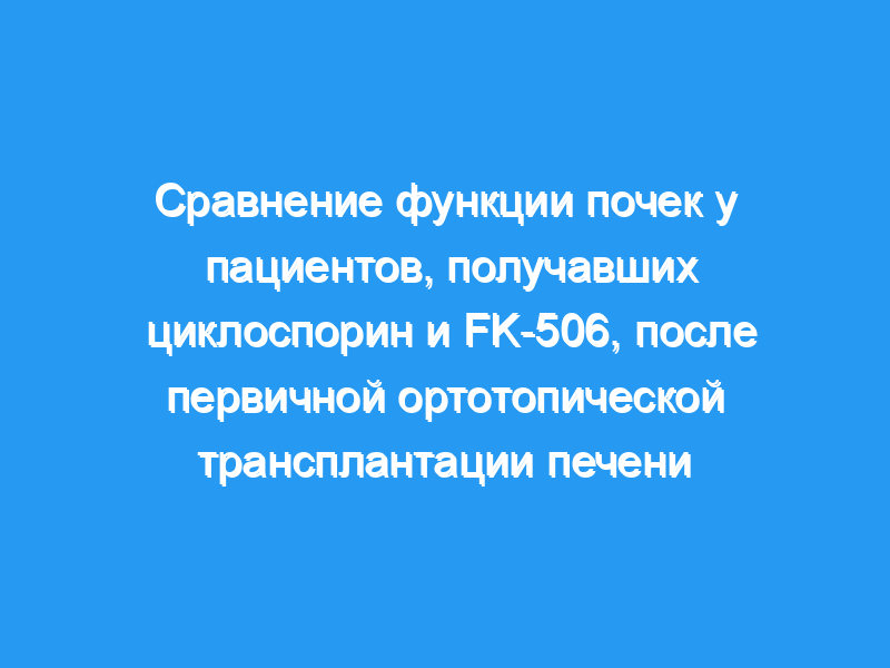 В этом рандомизированном контролируемом исследовании, сравнивающем FK-506 с CsA, мы сообщаем о параметрах нефротоксичности у взрослых пациентов, выживших через 90 дней после ортотопической трансплантации печени (OLT). Пациенты, рандомизированные для FK-506, сначала получали 0,15 мг/кг внутривенно в день, а затем 0,3 мг/кг внутривенно.