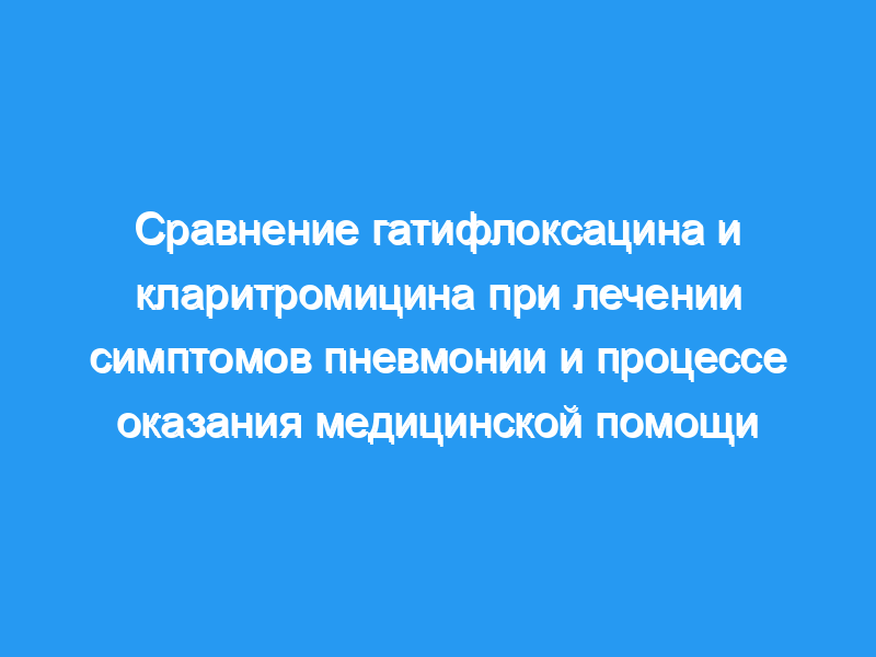 В поисках различий в результатах, помимо скорости излечения, мы проспективно сравнили разрешение симптомов, побочные эффекты и методы лечения при использовании кларитромицина и гатифлоксацина для лечения рентгенологически подтвержденной внебольничной пневмонии.
