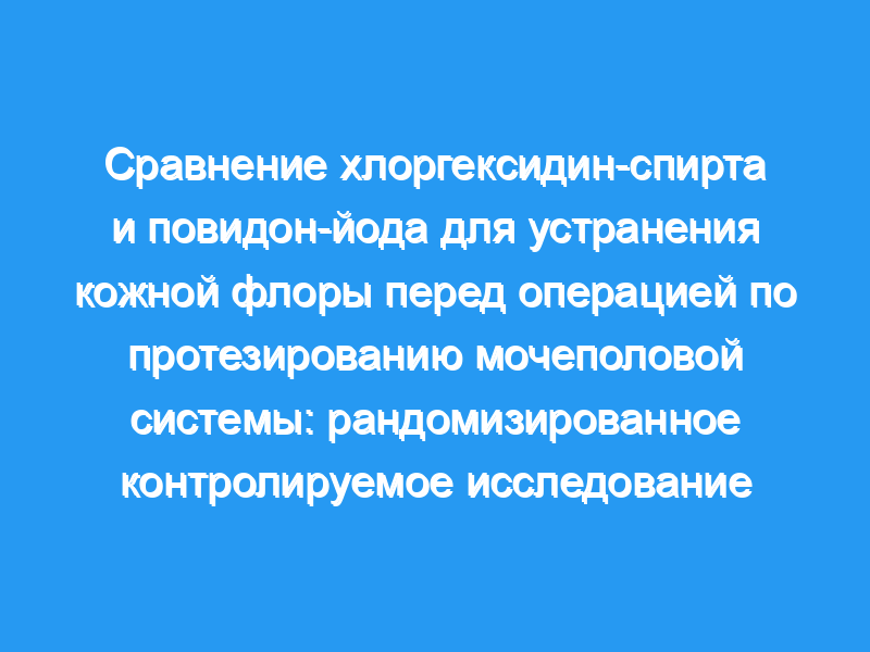 Хлоргексидиновый спирт превосходил повидон-йод в уничтожении кожной флоры на месте операции перед имплантацией мочеполового протеза. По-видимому, не существует какого-либо повышенного риска раздражения кожи уретры или гениталий при применении хлоргексидина по сравнению с повидон-йодом. Хлоргексидин-спирт, по-видимому, является оптимальным средством для подготовки кожи перед процедурами протезирования мочеполовой системы.