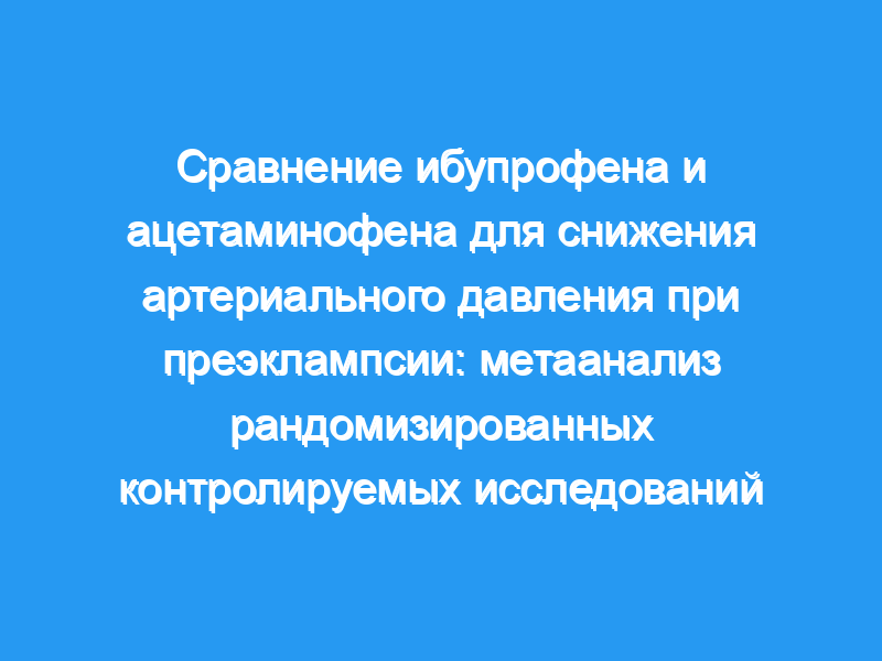 Сравнение ибупрофена с ацетаминофеном в отношении артериального давления (АД) при преэклампсии остается спорным. Мы проводим систематический обзор и мета-анализ, чтобы сравнить влияние ибупрофена и ацетаминофена на АД при преэклампсии.