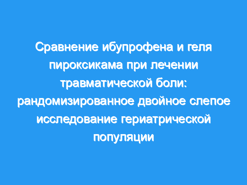 В этом проспективном, рандомизированном, контролируемом, двойном слепом исследовании пациенты пожилого возраста были распределены по группам, которые получали либо местный ибупрофен (n = 70), либо местный пироксикам (n = 69). Первая доза геля была применена в отделении неотложной помощи, а остальные дозы пациенты вводили самостоятельно дома трижды в день в течение 72 часов. Для каждого пациента исходная базовая оценка по визуальной аналоговой шкале (VAS) (V 0) сравнивалась с оценками VAS в моменты времени 60 мин (V1), 120 мин (V2), 24 ч (V3) и 72 ч (V4). Оценивали снижение показателей ВАШ, клиническую эффективность лечения и частоту нежелательных явлений.