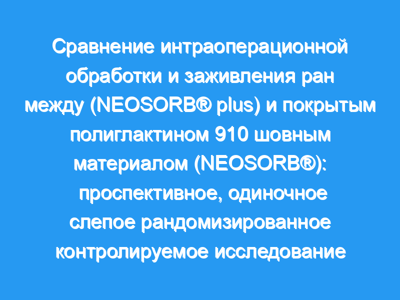 НЕОСОРБ® Plus не уступает традиционным швам с точки зрения интраоперационной обработки и заживления ран, что потенциально делает NEOSORB® Плюс выгодная альтернатива для пациентов с повышенным риском развития SSI. Пробная регистрация: ClinicalTrials.gov : NCT02431039 . Дата регистрации пробной версии 14 августа 2015 года.