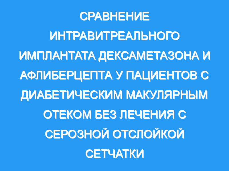Сравнить эффективность и безопасность интравитреального имплантата дексаметазона (DEX) по сравнению с афлиберцептом у пациентов с диабетическим макулярным отеком без лечения с биомаркерами воспаления.
