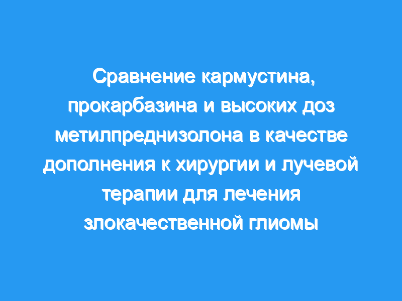 В течение 3 недель после окончательного хирургического вмешательства 609 пациентов с гистологически подтвержденной супратенториальной злокачественной глиомой были рандомизированы для получения, в дополнение к 6000 рад лучевой терапии, одной из четырех схем лечения: кармустин (BCNU), высокие дозы метилпреднизолона, прокарбазин или BCNU плюс высокие дозы метилпреднизолона.