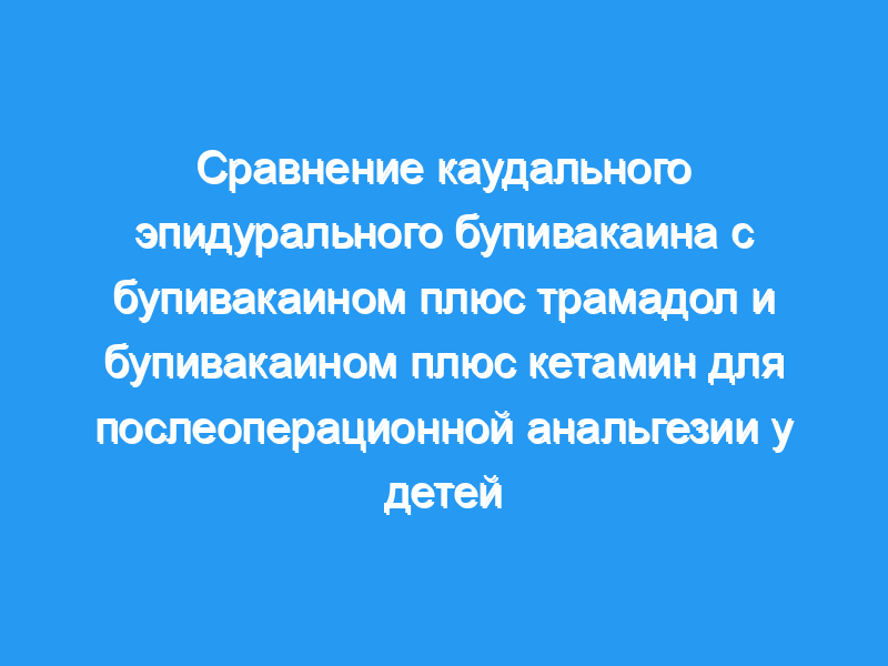 Каудальное введение 0,5 мл/кг бупивакаина 0,25% плюс кетамин или бупивакаина 0,25% плюс трамадол 1 мг/кг обеспечивало значительно большую продолжительность обезболивание без усиления побочных эффектов по сравнению с применением только бупивакаина.