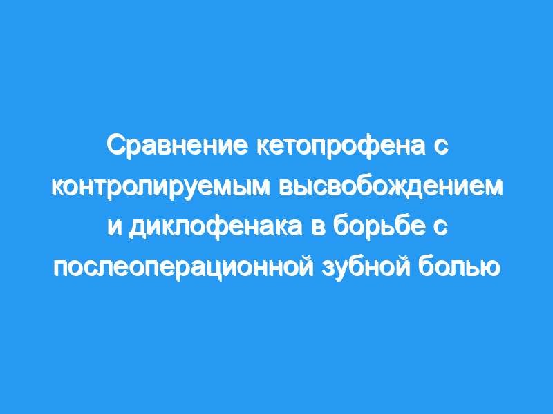 Предоперационное лечение кетопрофеном с контролируемым высвобождением или диклофенаком сравнивалось у 56 амбулаторных пациентов для контроля послеоперационной зубной боли после одностороннего или двустороннего хирургического удаления нижнего третьего моляра.