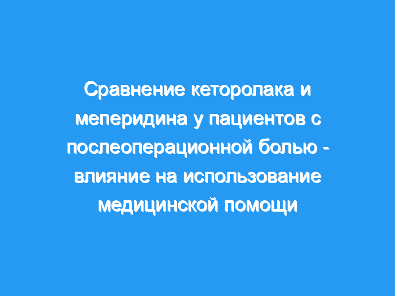 Было проведено двойное слепое рандомизированное исследование для сравнения влияния внутримышечного введения кеторолака трометамина и меперидина гидрохлорида и последующих пероральных обезболивающих препаратов на использование медицинских услуг и послеоперационное восстановление.