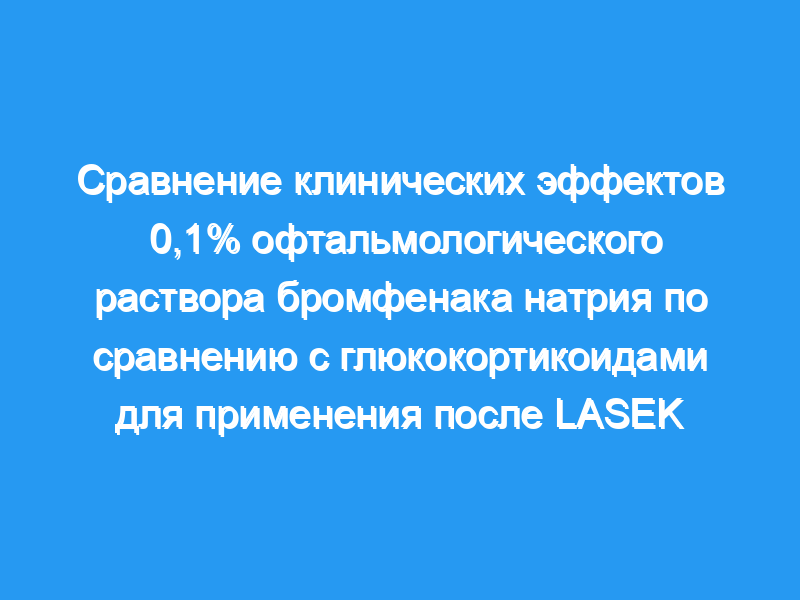Оценить безопасность, эффективность и соответствие Бронуку (бромфенак натрия офтальмологический раствор 0,1%) после LASEK в сравнении с глюкокортикоидами.