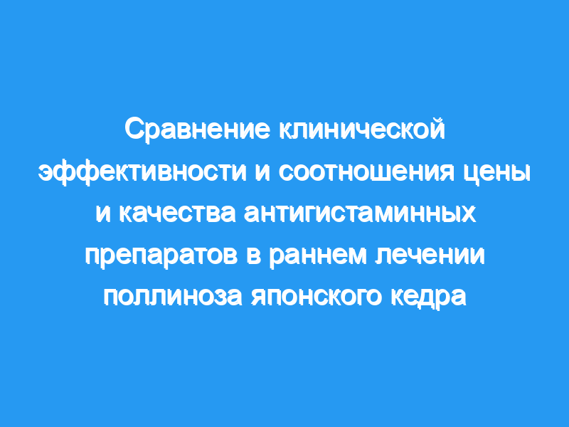 Поллиноз японского кедра (JCP) поражает более 16% населения Японии. Предполагаемые прямые и косвенные затраты на это заболевание в 1998 году составили 286 миллиардов иен. В терапии JCP антигистаминные препараты являются препаратами первой линии. Хорошо известно, что начало лечения JCP антигистаминными препаратами до первого дня рассеивания пыльцы может облегчить тяжесть назальных симптомов во время сезона пыльцы. Целью данного исследования является оценка клинической эффективности и соотношения затрат и качества 7 основных антигистаминных препаратов второго поколения в раннем лечении поллиноза японского кедра (JCP).