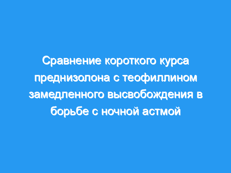 Было проведено двойное слепое рандомизированное параллельное групповое исследование с двойным манекеном для оценки роли перорального преднизолона в лечении ночной астмы и сравнения его с более часто используемым теофиллином замедленного высвобождения.