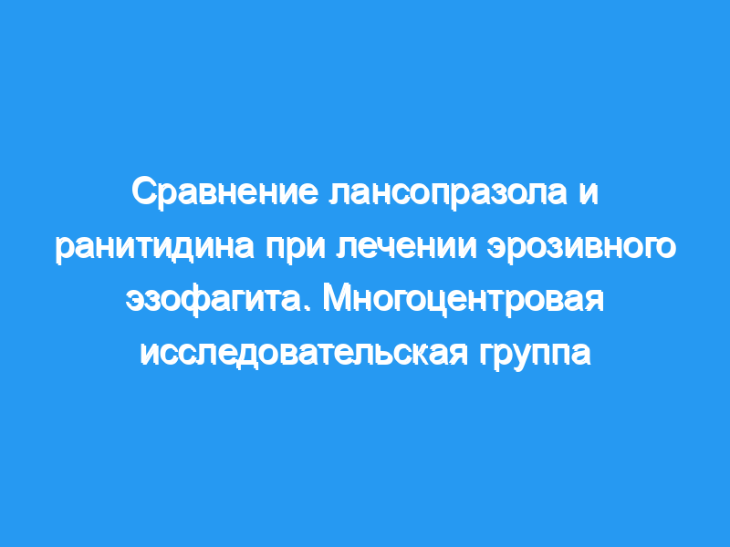 Лансопразол — это новый ингибитор протонной помпы, который вызывает длительное снижение кислотности желудочного сока. Целью данного исследования было сравнение лансопразола со стандартной дозой ранитидина при лечении пациентов с рефлюкс-эзофагитом. Двести сорок семь пациентов с эрозивным эзофагитом были рандомизированы на 8 недель лечения либо 30 мг лансопразола один раз в день, либо 150 мг ранитидина два раза в день.