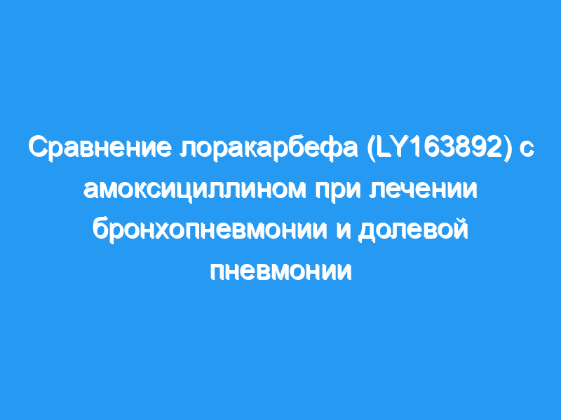Эти данные подтверждают вывод о том, что лоракарбеф и амоксициллин обладают сопоставимой эффективностью и безопасностью в лечении. бронхопневмонии и долевой пневмонии, вызванных чувствительным патогеном.