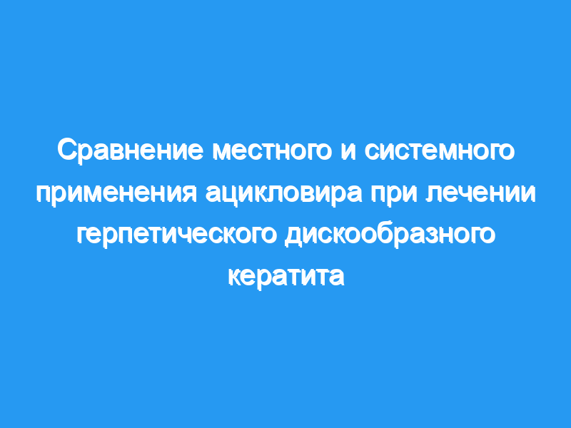 Сделан вывод, что пероральное лечение ацикловиром является эффективная альтернатива офтальмологической мази при лечении герпетического дискообразного кератита.