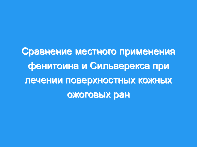 Сравнить местное применение дифенилгидрата (фенитоина) с сульфадиазином/хлоргексидином серебра (Silverex) с точки зрения скорости заживления ран, обезболивающих и антибактериальных свойств при поверхностных кожных ожогах (второй степени) небольшого и среднего размера (< 30% TBSA). Дизайн: Проспективное рандомизированное контролируемое исследование.