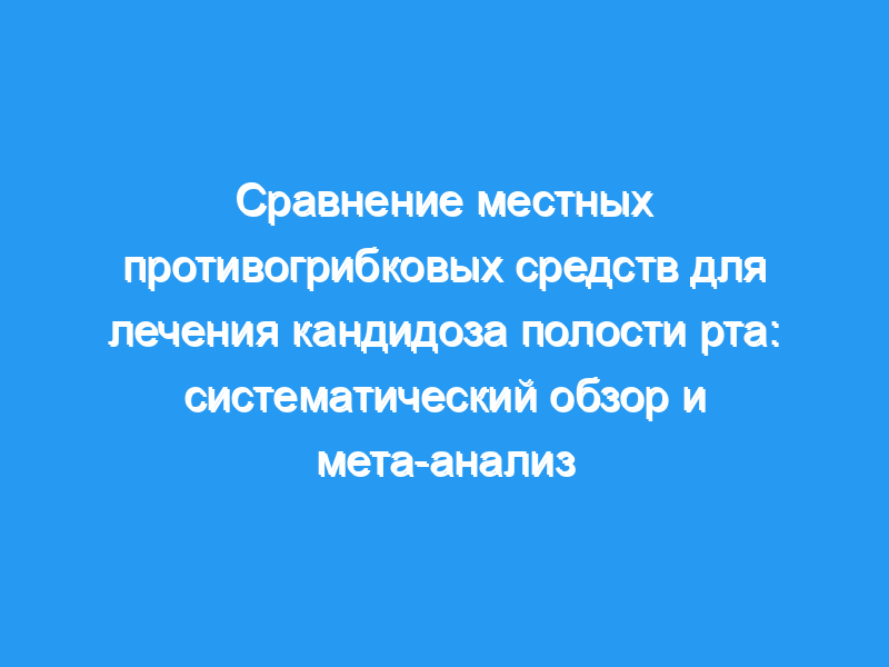 Сравнить эффективность и безопасность местных противогрибковых препаратов при кандидозе полости рта у взрослых и детей. Дизайн исследования: Поиск в базах данных проводился с момента их создания до декабря 2020 года. Критерием включения были рандомизированные контролируемые исследования, в которых сравнивались местные противогрибковые средства. Первичными результатами были клинический ответ и показатели микологического излечения. Вторичными исходами были частота побочных реакций и частота рецидивов.