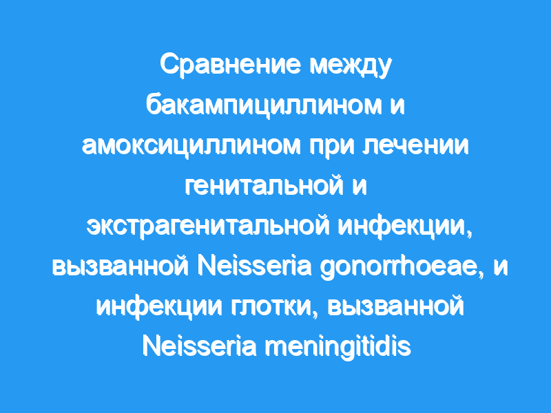 Шестьдесят три пациента с предполагаемой генитальной гонореей, у которых в анамнезе были экстрагенитальные половые контакты, были случайным образом обработаны амоксициллином 3 г или бакампициллином 4,8 г (эквивалентно 3,5 г ампициллина) с пробенецидом 1 г, чтобы сравнить эффективность препаратов при лечении гонореи на всех участках.