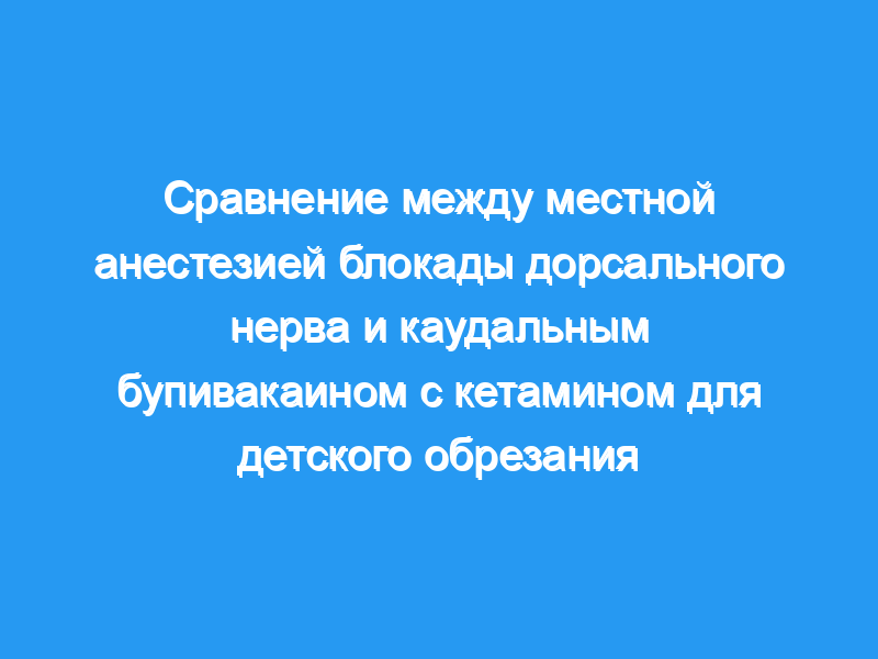 Шестидесяти мальчикам, подвергшимся плановому обрезанию, давали либо 0,5 мл х кг-1 бупивакаина 0,15% с кетамином 0,5 мг х кг-1 (n = 30), либо блокаду спинного нерва полового члена бупивакаином 0,5% (n = 30) в качестве дополнения к общей анестезии.. Послеоперационная боль оценивалась родителями с использованием модифицированной объективной оценки боли, и регистрировалось время, необходимое для первой потребности в обезболивании. Также оценивались двигательная слабость, время до первого мочеиспускания, послеоперационная тошнота и рвота (PONV), привычки в еде, нарушения сна и поведение.