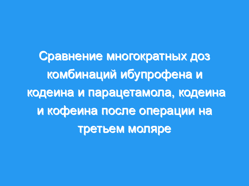 В рандомизированном двойном слепом перекрестном исследовании с двумя фиктивными множественными дозами у 30 пациентов мы сравнили комбинацию ибупрофен/кодеин (400 мг ибупрофена/25,6 мг кодеинфосфата) с комбинацией парацетамол/кодеин/кофеин (1 г парацетамола/16 мг кодеинфосфата/60 мг кофеин) для облегчения боли в течение 6 дней после двухэтапного двустороннего удаления нижнего третьего моляра.