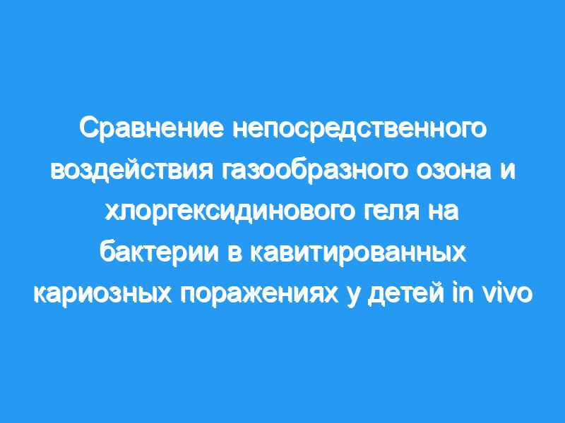 В этом исследовании мы сравниваем непосредственное воздействие газообразного озона и хлоргексидинового геля на бактерии в кавитированных кариозных поражениях у детей.