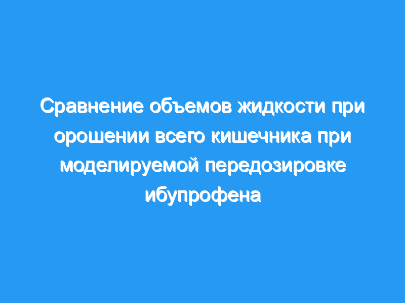 Отдел клинических исследований. Участники: Девять взрослых мужчин. Вмешательства: В течение 2 отдельных дней добровольцы принимали примерно 75 мг/кг ибупрофена. При лечении 1, через 30 минут после приема ибупрофена, был начат 3-литровый WBI со скоростью 2 л/ч. Эту процедуру повторили при обработке 2 с 8-L. ВБИ вводят со скоростью 2 л/ч. Четырнадцать временных образцов сыворотки были собраны до и после приема препарата в течение 24-часового периода и проанализированы на концентрацию ибупрофена. Сравнивали пиковую концентрацию в сыворотке крови, время до пика концентрации, общую площадь под кривой концентрация-время в сыворотке крови (AUC), клиренс и объем распределения.