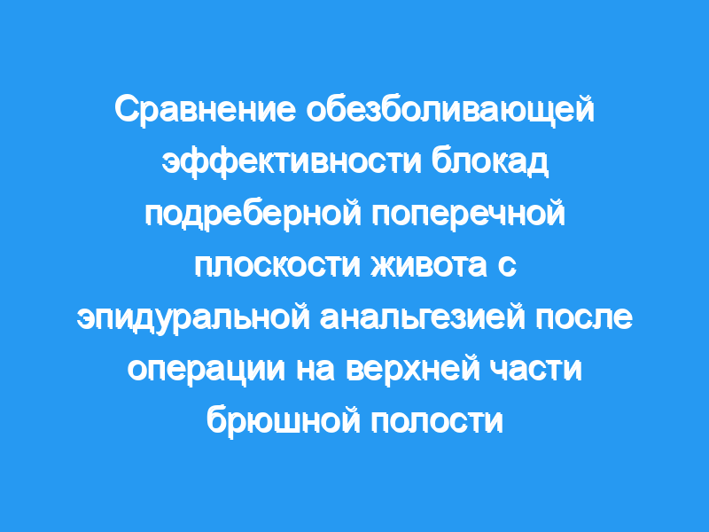 Мы сравнили их обезболивающую эффективность с эффективностью эпидуральной анальгезии после обширной операции на верхней части брюшной полости в рандомизированном контролируемом исследовании tria.