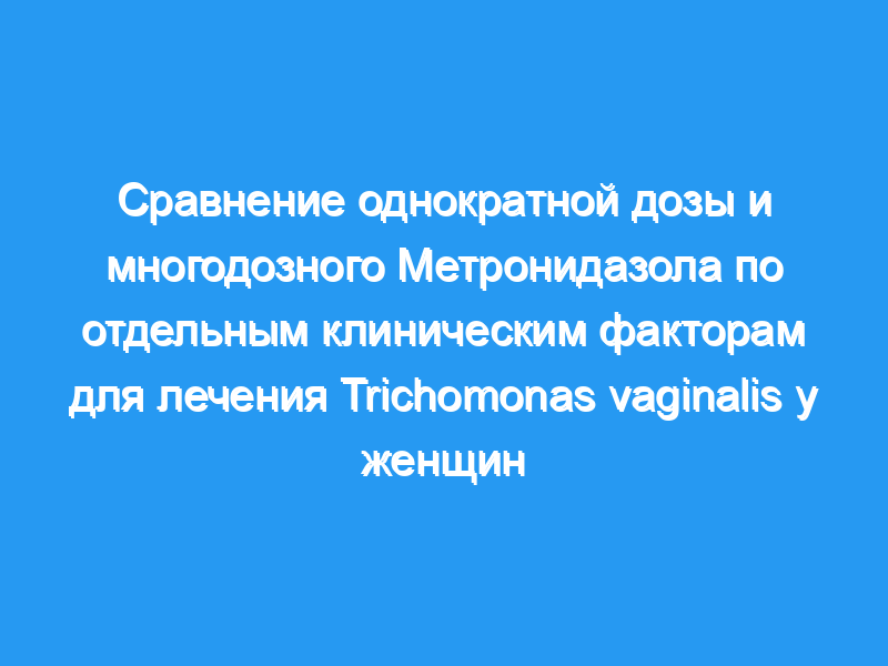 В рандомизированном контролируемом исследовании 2 г (однократная доза) метронидазола (MTZ) против 500 мг два раза в день в течение 7 дней (мультидоза) для лечения Trichomonas vaginalis, мультидоза была выше. Мы проверили, был ли эффект аналогичным по отдельным клиническим факторам, чтобы определить, можно ли ориентироваться на рекомендации по лечению.