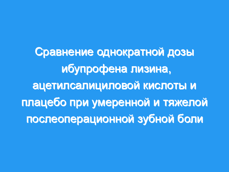 В однократном двойном слепом исследовании с параллельными группами в одном месте ибупрофен лизин в дозе 200 мг (IBL 200) сравнивали с ацетилсалициловой кислотой в дозе 500 мг (ASA 500) и плацебо у 183 пациентов с послеоперационной ПАИ зубов средней и тяжелой степени.