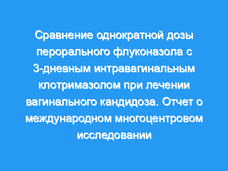Сделан вывод, что лечение вагинального кандидоза флуконазолом в виде однократной пероральной дозы было более эффективным в долгосрочной перспективе, быстрее снимало симптомы и было таким же безопасным, как и лечение интравагинальным клотримазолом..