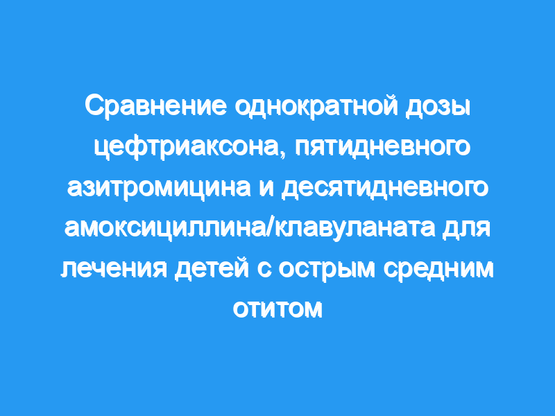 В заключение, при лечении детей с АОМ клинический успех однократного внутримышечного введения цефтриаксона и пятидневного лечения азитромицином был сопоставим с таковым при традиционной 10-дневной терапии высокими дозами амоксициллина/клавуланата.