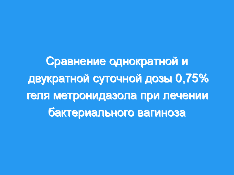 Однократное ежедневное введение 0,75% геля метронидазола по 5 г в течение 5 дней обеспечивает эффективность, безопасность и переносимость, эквивалентные используемым в настоящее время дозировкам два раза в день при лечении бактериального вагиноза, добавляя еще один конкурентный выбор к имеющимся терапевтическим вариантам для этого состояния.