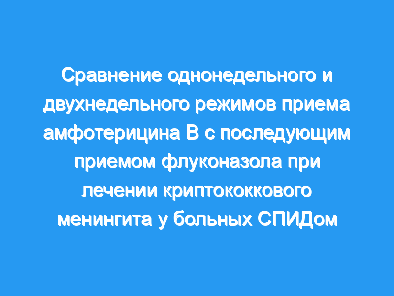 Сравнить безопасность и эффективность однонедельного (AmB1) и двухнедельного (AmB2) приема амфотерицина В с последующим приемом флуконазола. Материал и метод: 57 пациентов с криптококковым менингитом были случайным образом распределены либо на AmB1, либо на AmB2. Результатами исследования были микробиологические и клинические показатели.