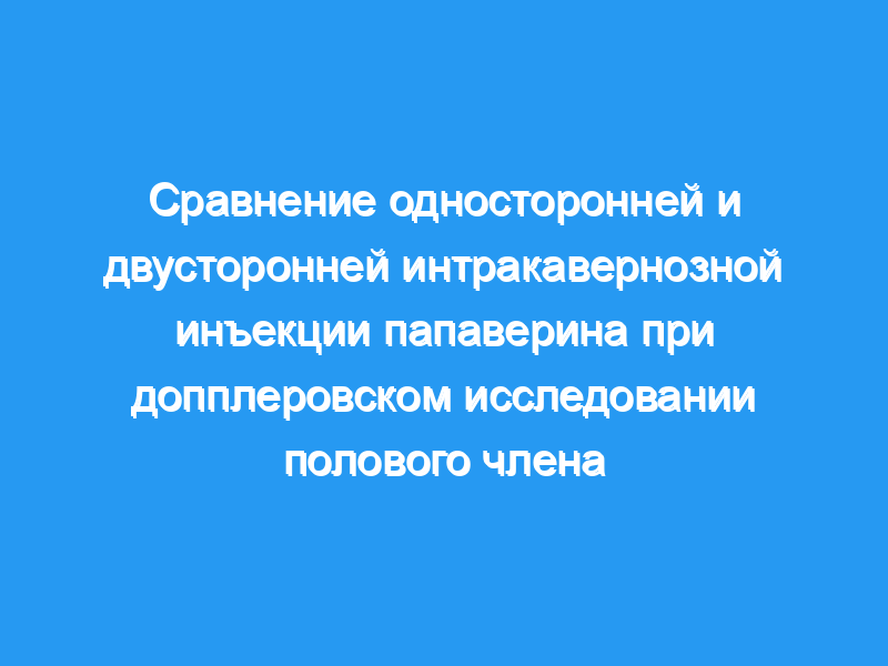 Введение папаверина только в одно кавернозное тело, несмотря на идеальную постинъекционную манипуляцию с половым членом, повлияет на синусоиды и кавернозную артерию на той же стороне инъекции сильнее, чем на контралатеральную sid.