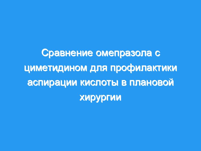 Пациенты были случайным образом распределены для приема либо без антацидов, либо перорально омепразола в дозе 40 мг вечером перед операцией, либо перорально омепразола в дозе 40 мг за 2 часа до операции, либо шипучего циметидина в дозе 800 мг за 2 часа до операции.