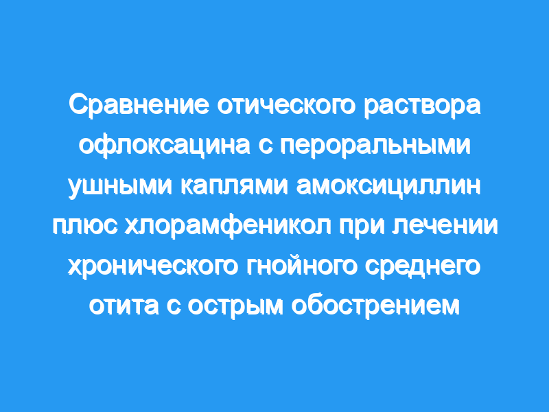 Эффективность и безопасность 0,3% раствора офлоксацина для наружного применения (ОФЛХ) по 6 капель два раза в день сравнивали с эффективностью и безопасностью перорального применения амоксициллина по 500 мг три раза в день плюс 1% ушных капель хлорамфеникола по 3 капли три раза в день (АМОКС + СРБ) при двухнедельном лечении хронического гнойного средний отит (CSOM) с острым обострением.