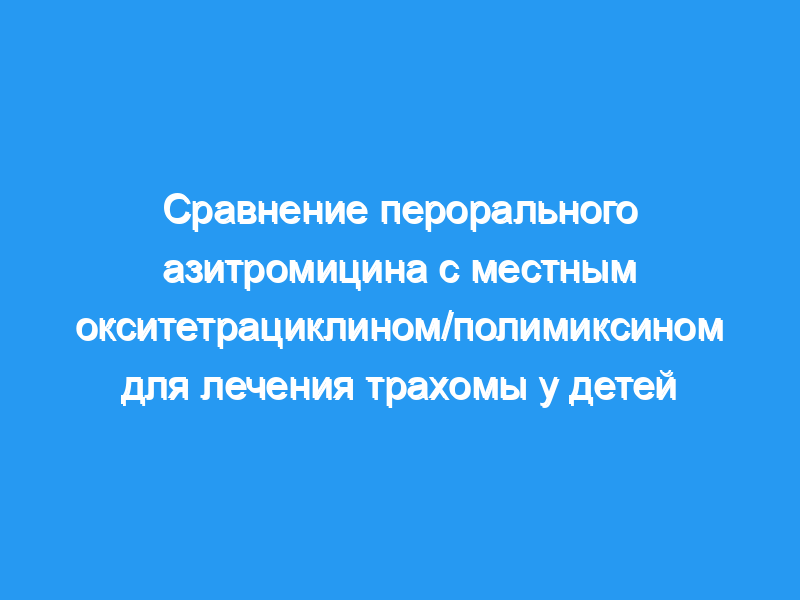 Таким образом, 1-6 доз азитромицина были эквивалентны 30 дням местного применения окситетрациклиновой/полимиксиновой мази и могут предложить эффективное альтернативное средство борьбы с эндемической трахомой.