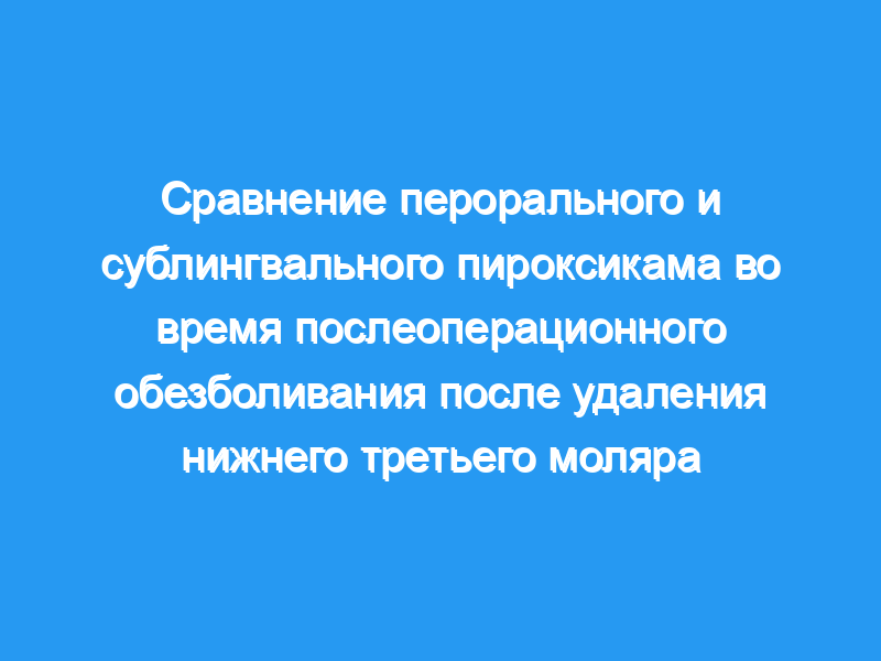 В этом исследовании 53 пациента получали пироксикам, вводимый перорально или сублингвально, после удаления симметрично расположенных нижних третьих моляров, во время двух отдельных назначений.