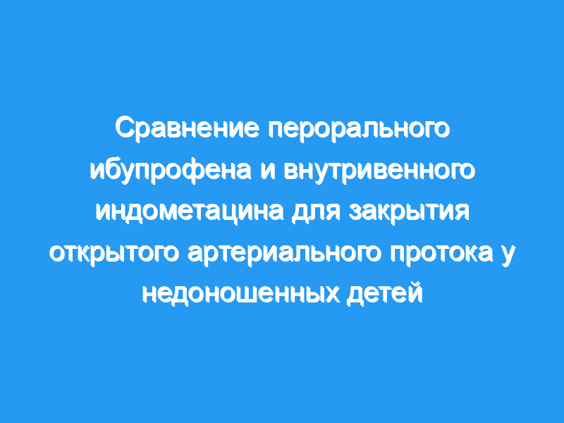 Сравнить эффективность и побочные эффекты ибупрофена и индометацина при лечении симптоматического открытого артериального протока (КПК) у недоношенных детей. Метод: Авторы изучили 30 младенцев (гестационный возраст <, or = 35 недель, возраст <, or = 10 дней), у которых был диагностирован симптоматический КПК, подтвержденный эхокардиограммой. Младенцы были рандомизированы для получения трех внутривенных доз индометацина с интервалом в 12 часов или трех доз ибупрофена с интервалом в 24 часа, начиная с десяти дней жизни. Демографические данные, частота закрытия клиники, потребность в дополнительном лечении, побочные эффекты, осложнения и клиническое течение новорожденных были зарегистрированы в течение 28 дней.