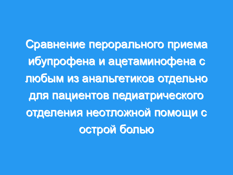 Мы сравнили обезболивающую эффективность комбинации перорального ибупрофена и ацетаминофена с любым из этих анальгетиков отдельно для педиатрических пациентов с ЭД с острой болью.