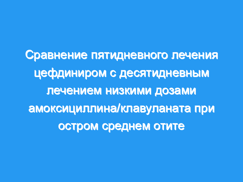 В проспективном многоцентровом слепом исследовании 425 пациентов в возрасте от 6 месяцев до 6 лет с клиническим диагнозом безрецидивного АОМ были рандомизированы для получения либо 5-дневной терапии цефдиниром (14 мг/кг два раза в день), либо 10-дневной терапии амоксициллином/терапия клавуланатом (45/6,4 мг/кг два раза в день). Клинический ответ оценивали в конце терапии (2-4 дня после приема антибиотиков, соответственно) и на 4 неделе (25-28 дней исследования).
