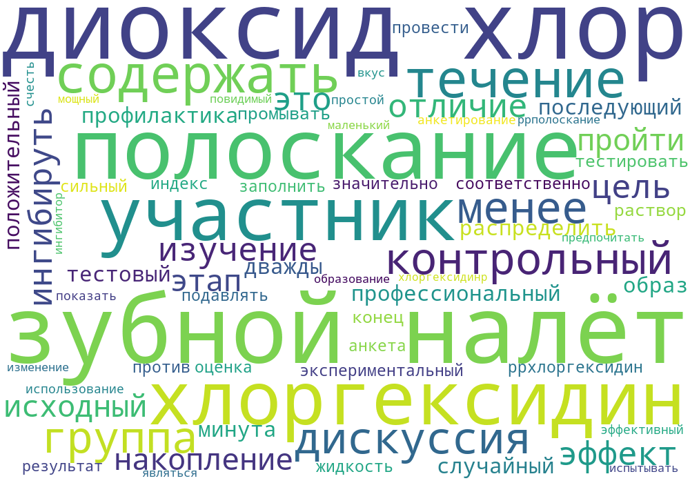 На исходном этапе все участники (N=77) прошли профессиональную профилактику и были случайным образом распределены в тестовую (диоксид хлора) или (положительную) контрольную (хлоргексидин) группу. В последующие 3 дня обе группы дважды в день в течение 1 минуты промывали 10 мл тестируемого или контрольного раствора. В конце экспериментального периода была проведена оценка зубного налета, и участники дискуссии заполнили анкету.