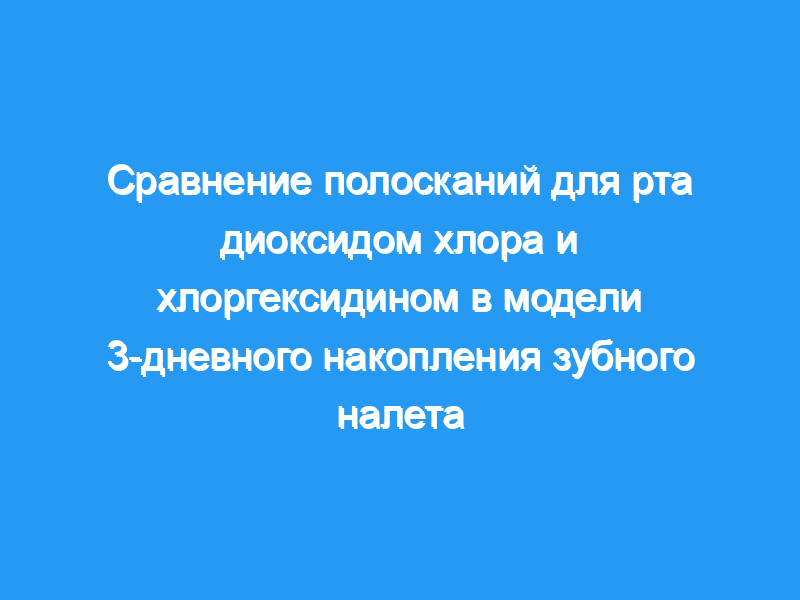 Целью этого исследования было изучение ингибирующего эффекта полоскания рта диоксидом хлора в отличие от полоскания рта, содержащего хлоргексидин (0,20%), в течение 3 дней накопления зубного налета.