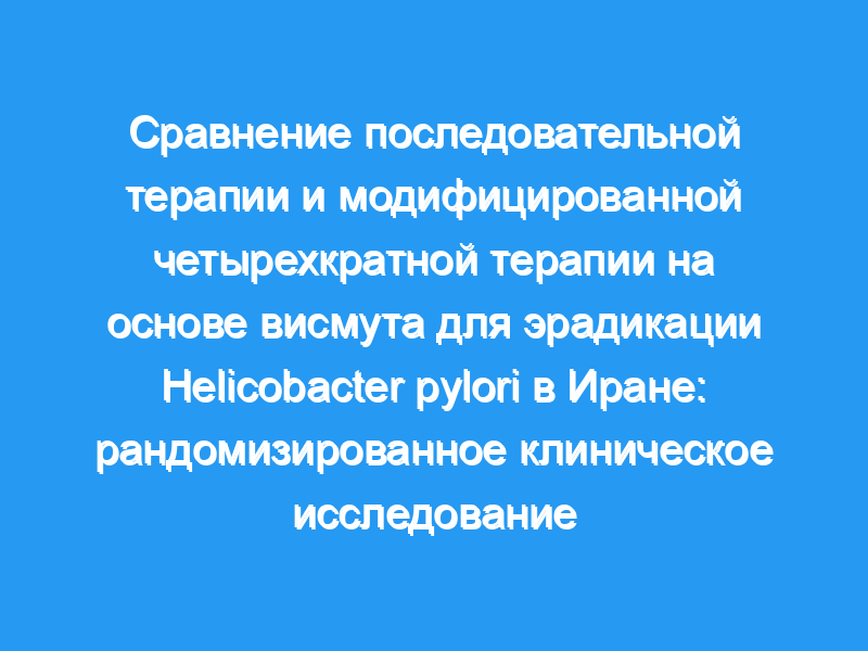 Поскольку оба режима показали приемлемые и сходные возможности в эрадикации H. pylori, а также из-за гораздо более высокой стоимости кларитромицина в Иране, режим, содержащий фуразолидон, кажется более эффективным. Необходимы дальнейшие модификации последовательных методов лечения, чтобы сделать их идеальными схемами в развивающихся странах.